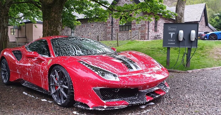 #ferarri #ferrari488 #pista #supercar #supercarsofinstagram #supercarspotting #snowfoam #nc500 #northcoast500 #scotlandhighlands